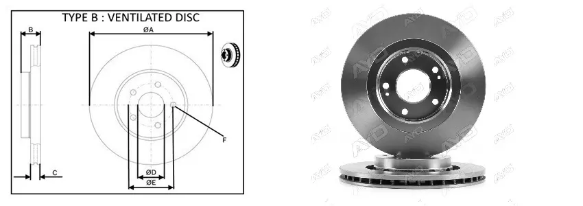 Диск гальмівний перед. Mitsubishi Outlander 2.0/2.4i 03>,3.0i16V/2.0TDi16V 06> APLUS 61407AP