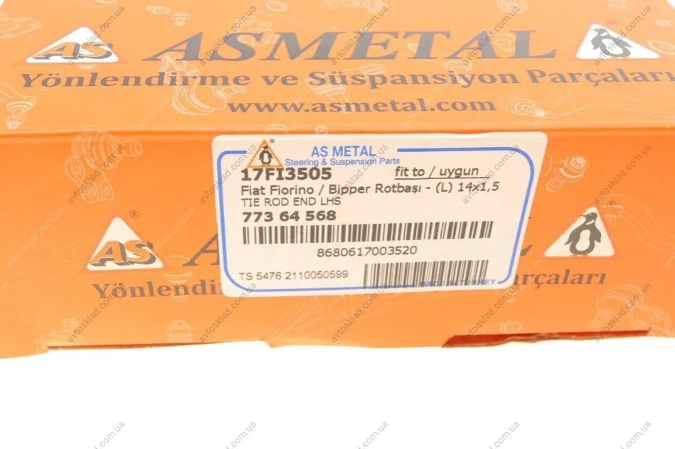 Наконечник рулевой лев.ALFA MITO:FIAT PUNTO,QUBO:OPEL ADAM,CORSA D:CITROEN NEMO,PEUGEOT BiPPER ASMETAL 17FI3505