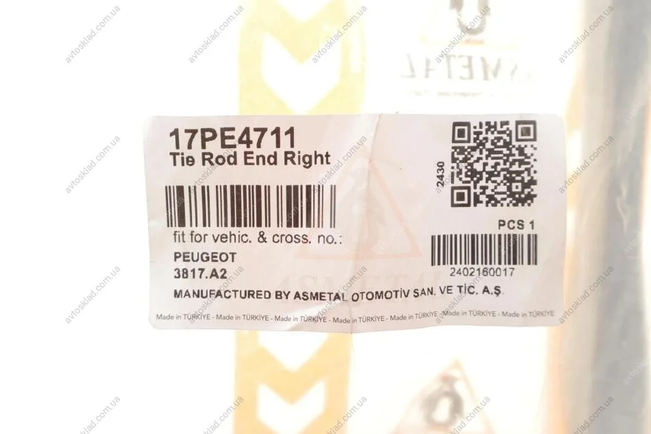 Наконечник рульової тяги Peugeot 508 10-18 Пр. ASMETAL 17PE4711