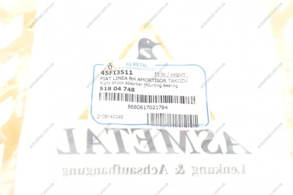 Опора амортизатора Fiorino/Nemo/Bipper 07- Пр. (+подшипник) ASMETAL 45FI3511