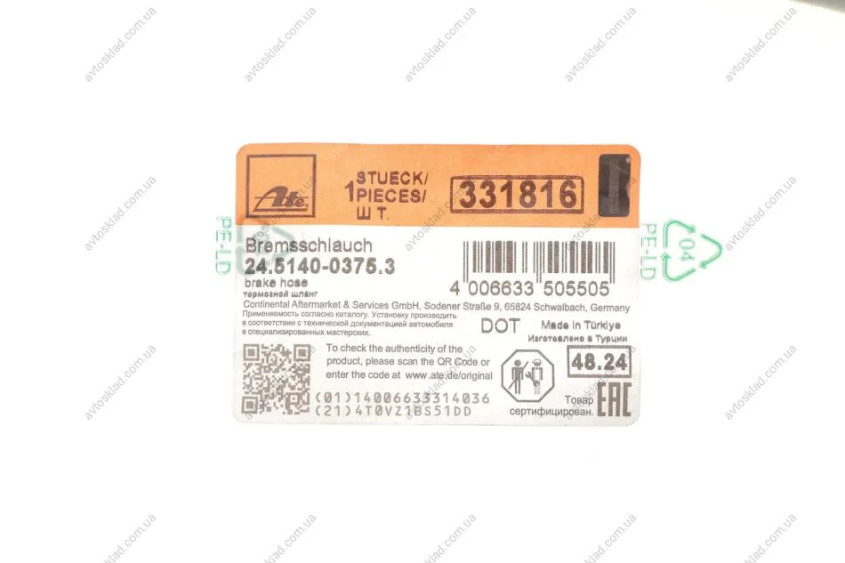 Шланг гальмівний ATE 24.5140-0375.3