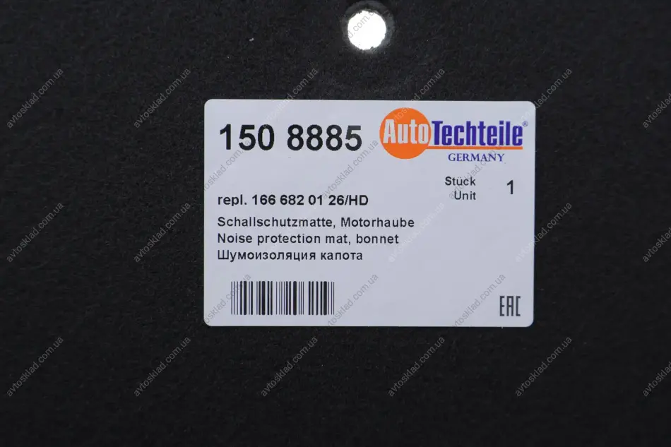 Шумоізоляційна панель капота моторного відсіку, термопресований синтетичний матеріал AUTOTECHTEILE 150 8885