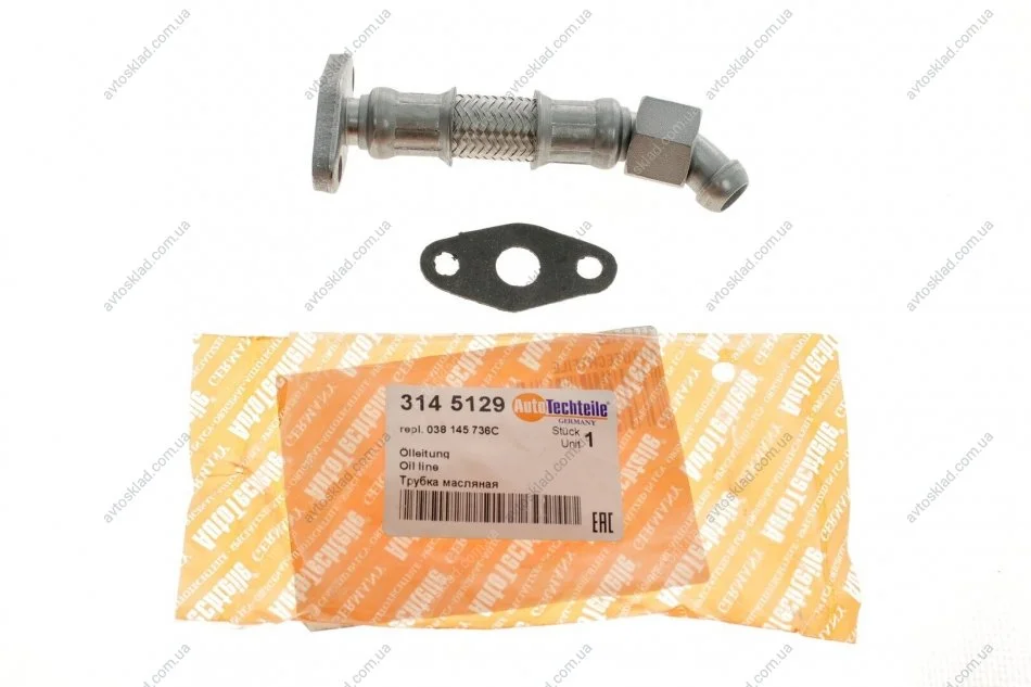 Трубка обратки масла с турбины Audi A3 96-13/ Skoda Fabia 99-10/ Octavia 97-13/ Roomster 06-10/ Superb 08-10/ VW Bora 99-05/ Caddy 99-15/ Golf 98-09/ Jetta 05-10/ Passat 05-10/ Polo 01-09/ Sharan 95-10/ Touran 03-10/ T5 03-09 (1.9/2.0 TDI) AUTOTECHTEILE 314 5129
