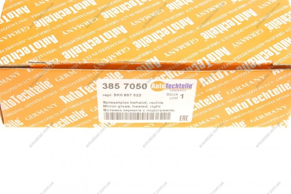 Вставка зеркала с подогревом, правая VW Golf VI 08-13/ Touran 09-15 AUTOTECHTEILE 385 7050
