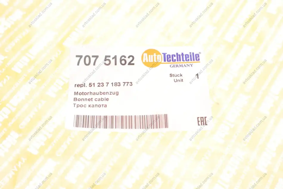 Трос капота BMW 5 F07 (GT)/F10/F11 08-17 / 6 F06/F12/F13 11-18 / 7 F01/F02 07-15 AUTOTECHTEILE 707 5162