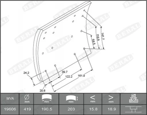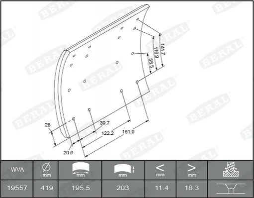 Комплект тормозных башмаков, барабанные тормоза BERAL KBL19557.0-1550
