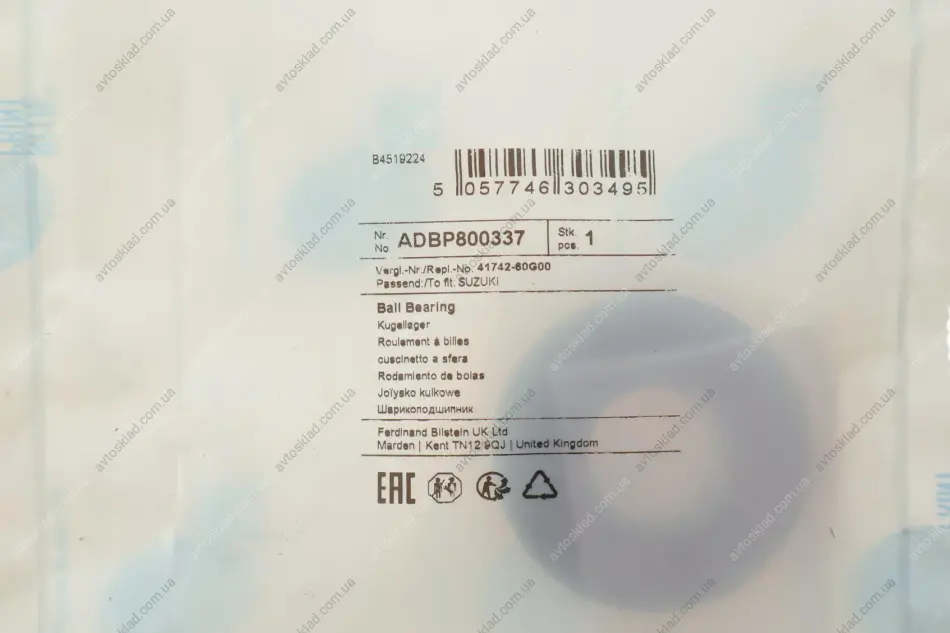 Підшипник кульковий d>30 BLUE PRINT ADBP800337