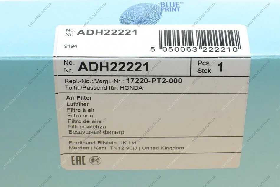 Фильтр воздушный Honda BLUE PRINT ADH22221