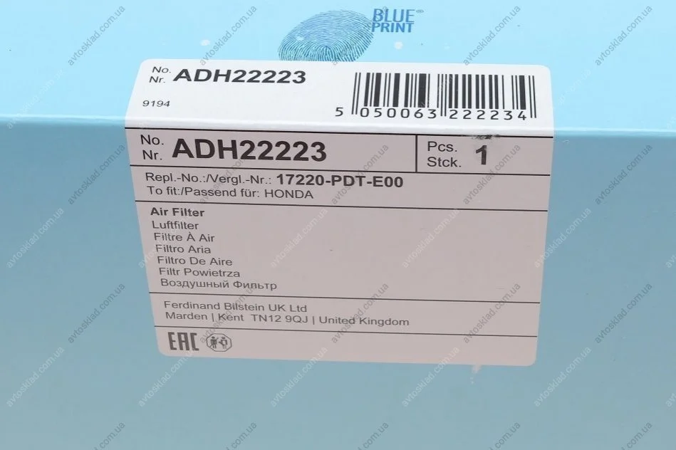 Фильтр воздушный BLUE PRINT ADH22223