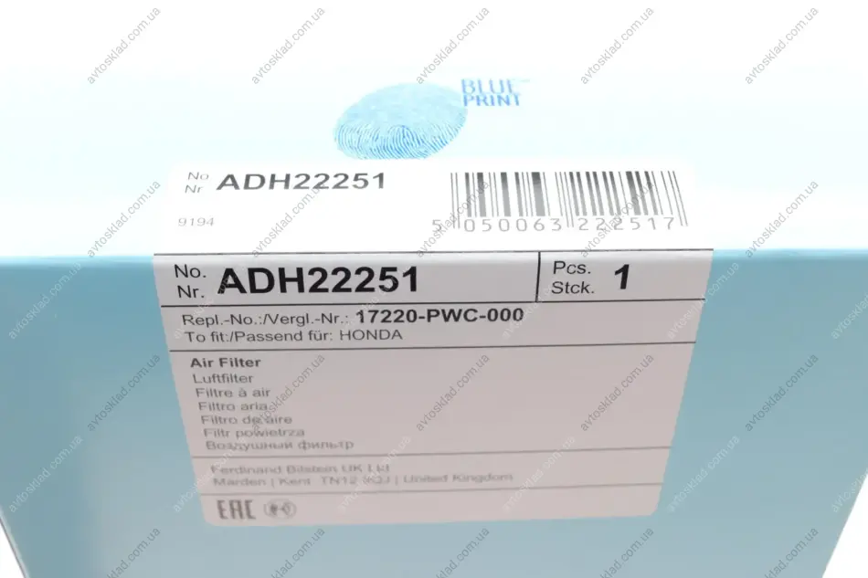 Фильтр воздуха BLUE PRINT ADH22251
