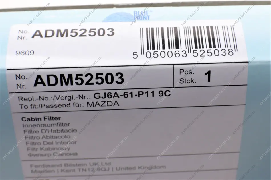 Фильтр салона Mazda BLUE PRINT ADM52503