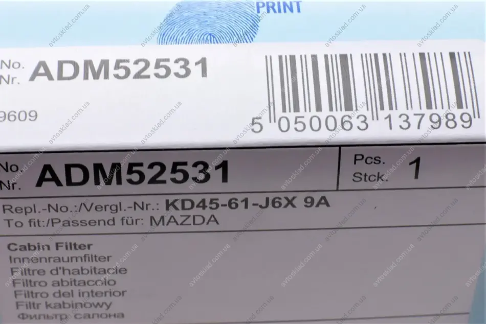 Фильтр салона Mazda BLUE PRINT ADM52531