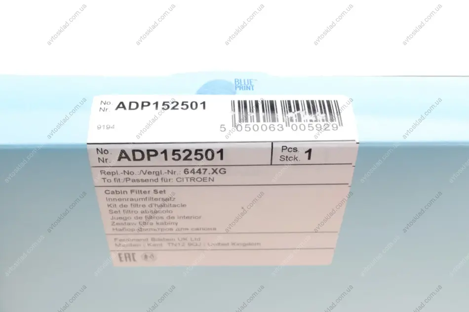 Фильтр салона (компл.) Citroen, Opel, Peugeot, Toyota BLUE PRINT ADP152501