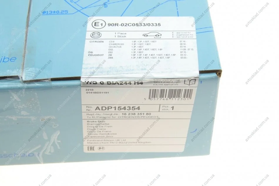 Тормозной диск с подшипником. BLUE PRINT ADP154354