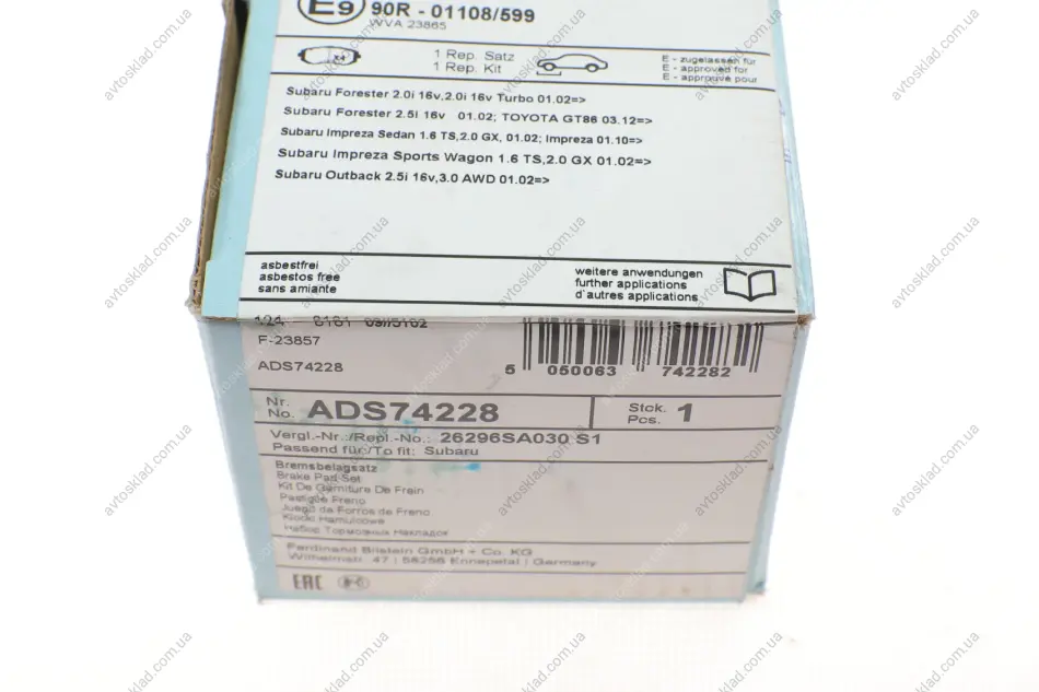 Колодки тормозные дисковые передние Subaru BLUE PRINT ADS74228