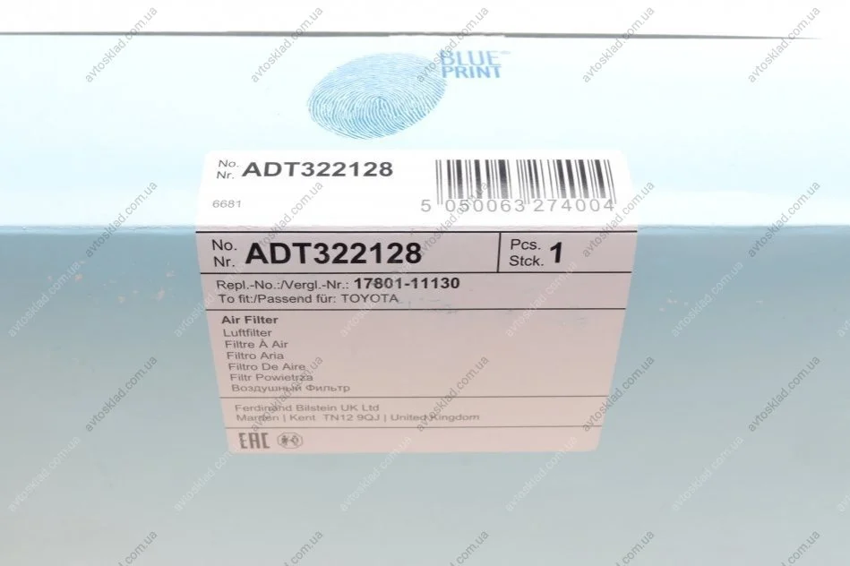 Фильтр воздушный BLUE PRINT ADT322128