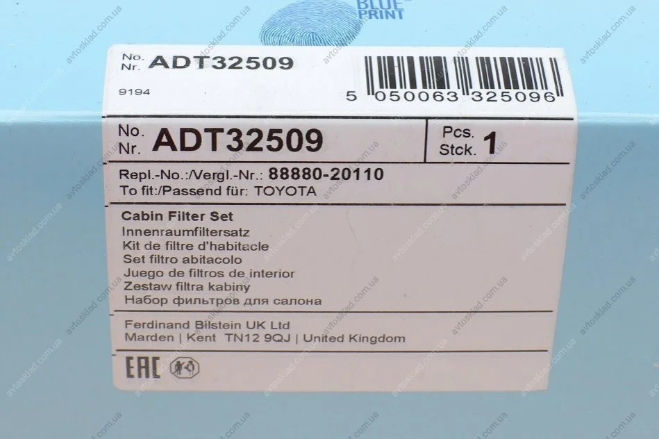 Фильтр салона (компл.) Toyota BLUE PRINT ADT32509