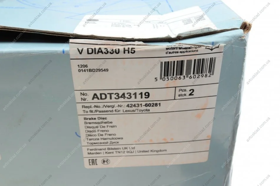 Диск тормозной задний Lexus, Toyota BLUE PRINT ADT343119