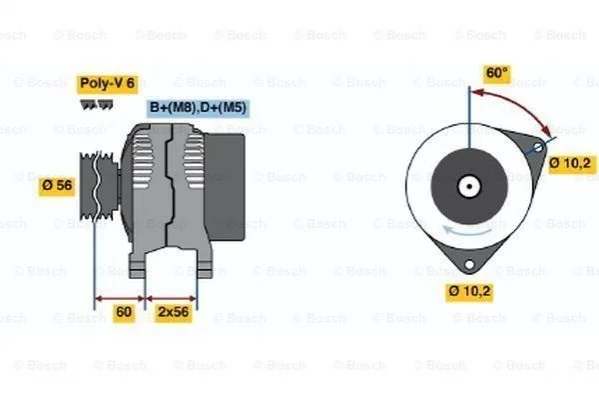 Генератор_ 14V 120A OPEL/SAAB Calibra/Omega/Vectra/900/9000 \'\'2,0-3,2 \'\'92-03 BOSCH 0986039250