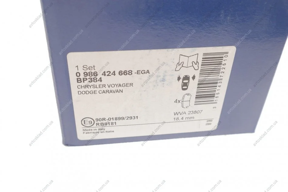 Колодка торм. диск. CHRYSLER, DODGE передн. BOSCH 0986424668