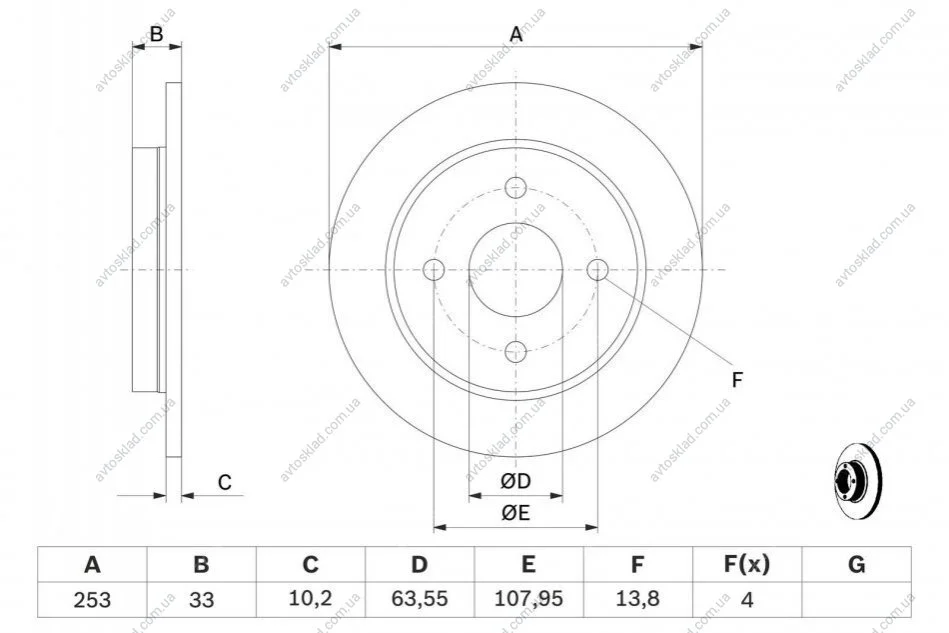 Диск тормозной задний FORD Focus -05 (253*10.15) BOSCH 0986478344