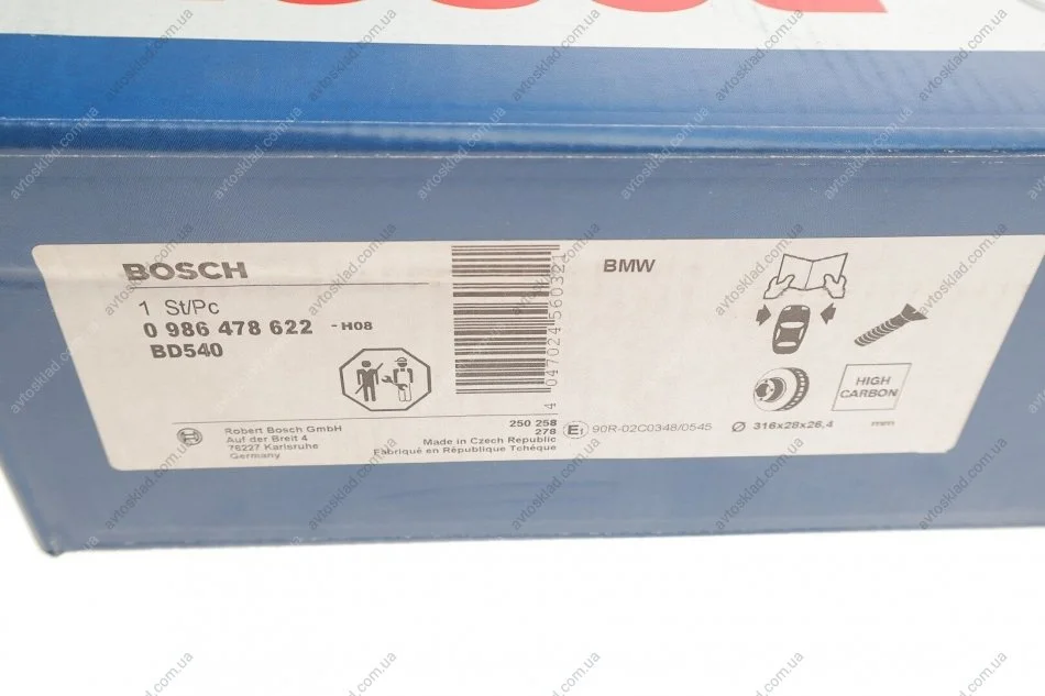 Диск тормозной BMW, передн. вент. BOSCH 0986478622