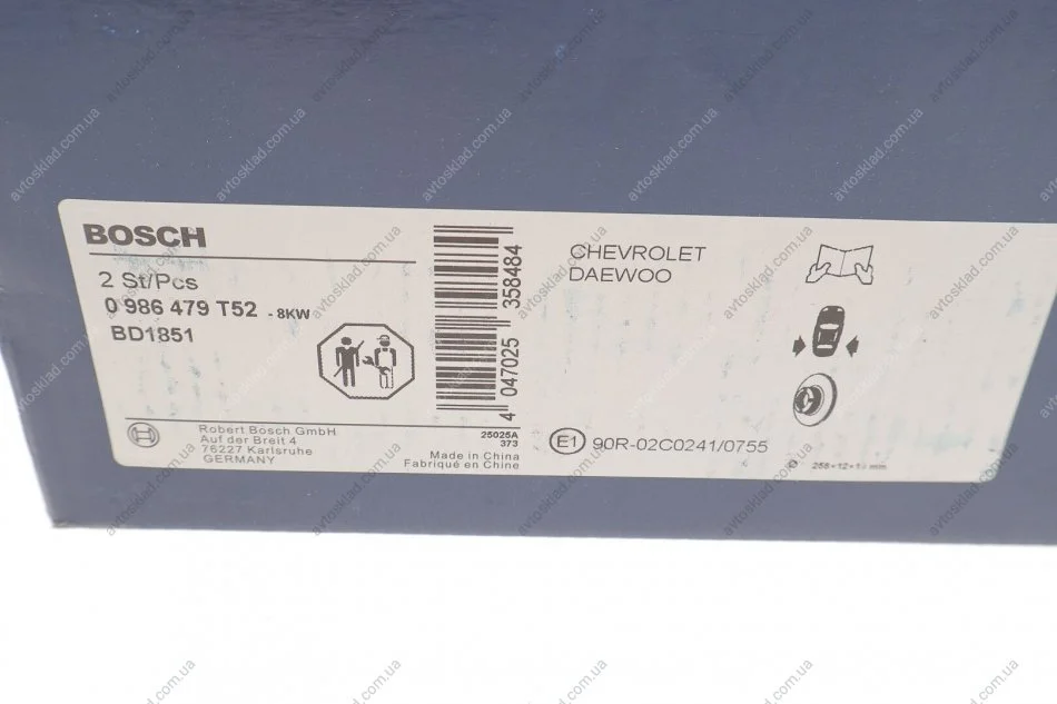 Тормозной диск BOSCH 0986479T52