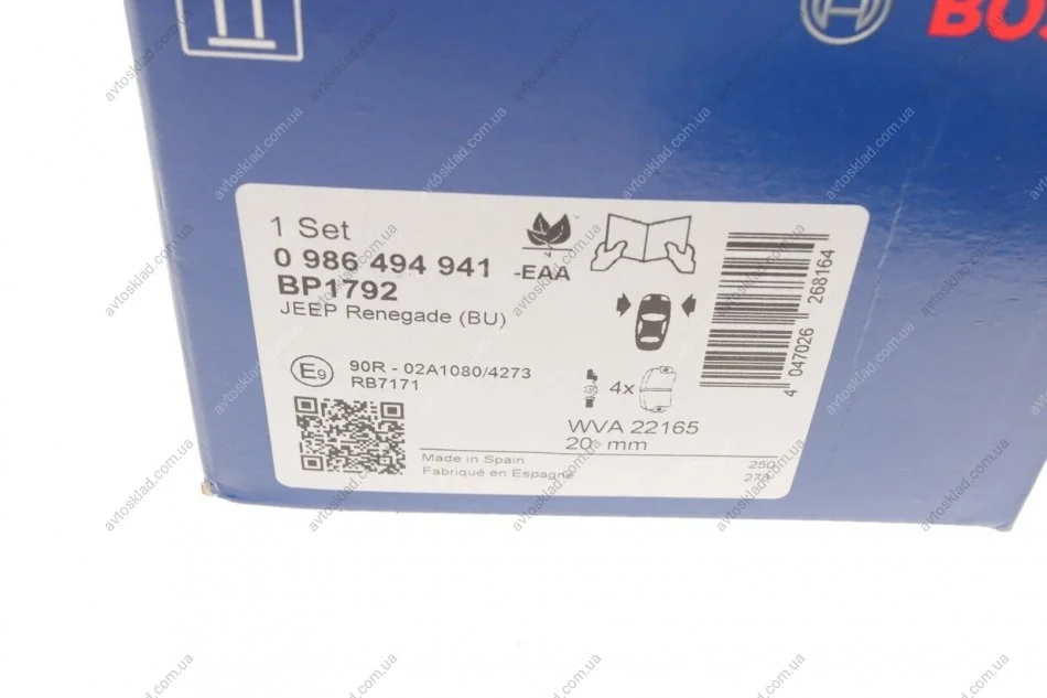 Тормозные колодки дисковые JEEP Renegade "F "14>> BOSCH 0986494941
