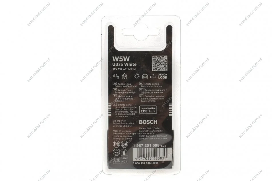 ЛАМПА ULTRA WHITE 4200K BOSCH 1 987 301 098