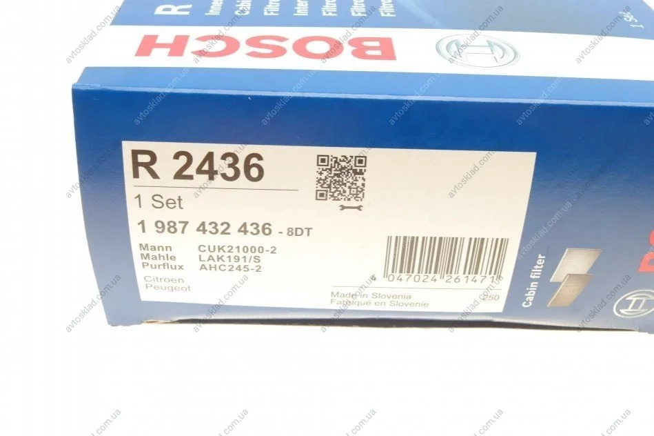 Воздушный фильтр салона 2436 CITROEN/PEUGEOT C3,DS3,207 1,4-1,6 06- BOSCH 1987432436