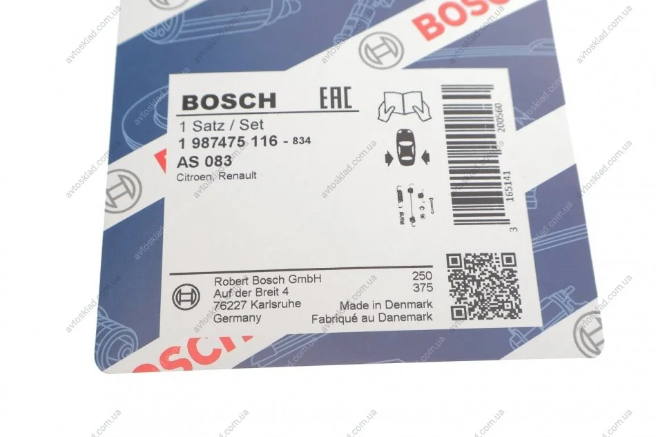 Монтажный к-кт тормозных колодок BOSCH 1987475116