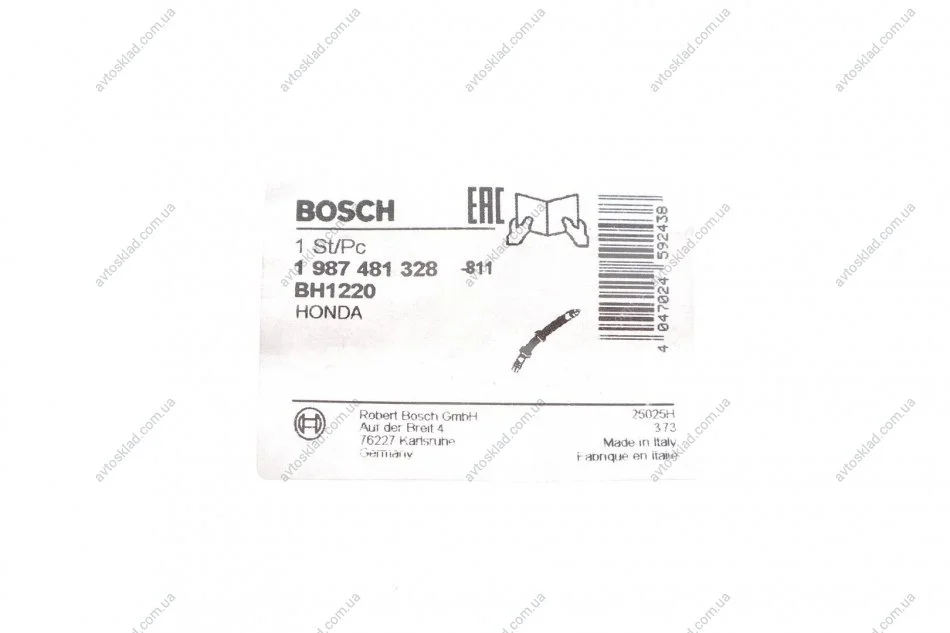 HONDA Шланг тормозн.передн.лев.Accord VII 03- BOSCH 1987481328
