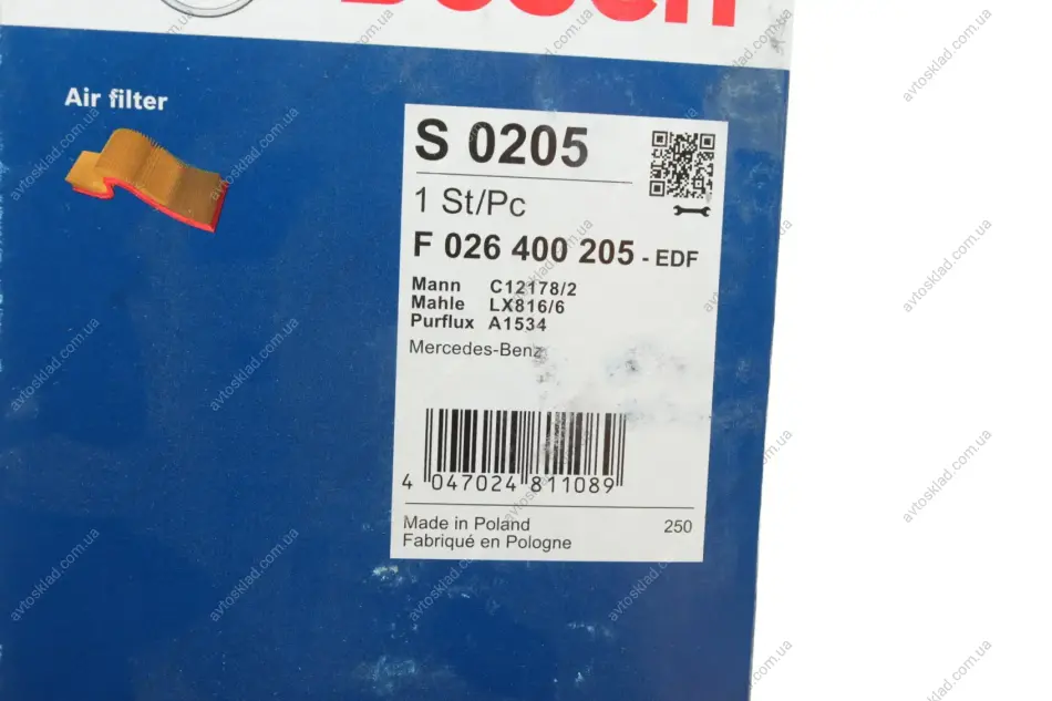 Воздушный фильтр MB E200-E220CDI W211 BOSCH F026400205