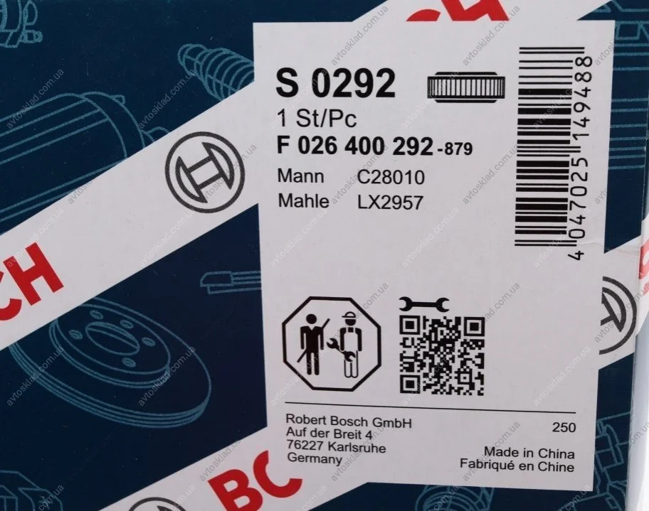 Аналоги "F 026 400 292 BOSCH":