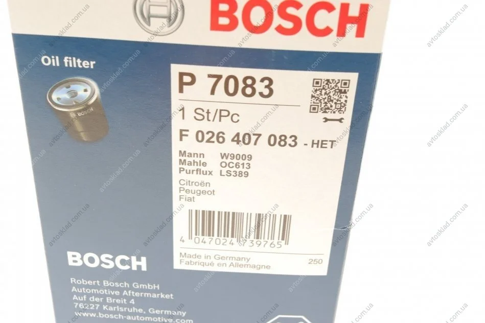 Фильтр масляный двигателя CITROEN, PEUGEOT BOSCH F026407083