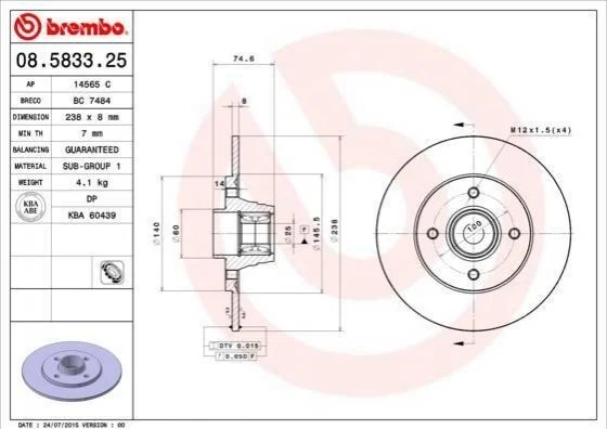 Диск гальмівний BREMBO 08.5833.25