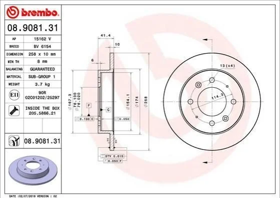 Тормозной диск BREMBO 08.9081.31