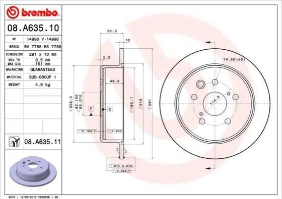 Тормозной диск BREMBO 08.A635.11