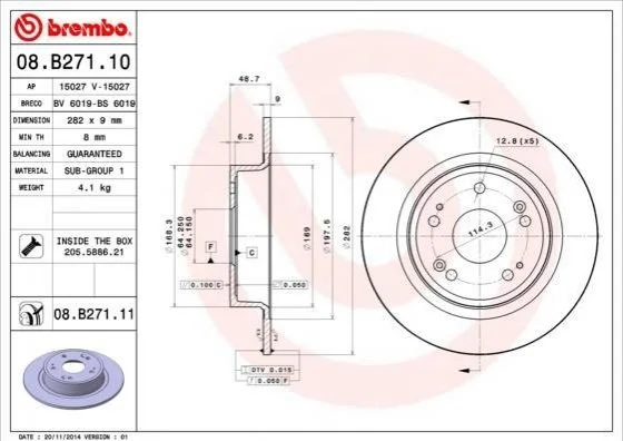 Тормозной диск BREMBO 08.B271.11