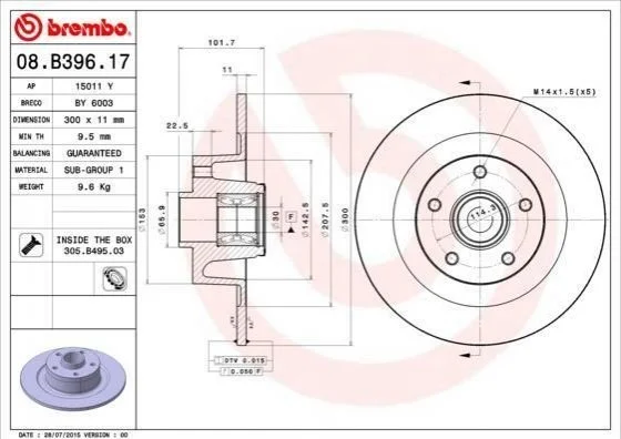 Тормозной диск BREMBO 08.B396.17