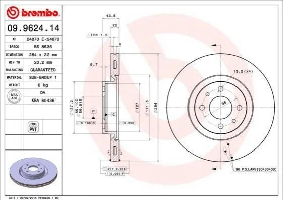 Аналоги "09.9624.14 BREMBO":