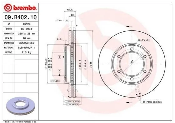 Тормозной диск BREMBO 09.B402.10