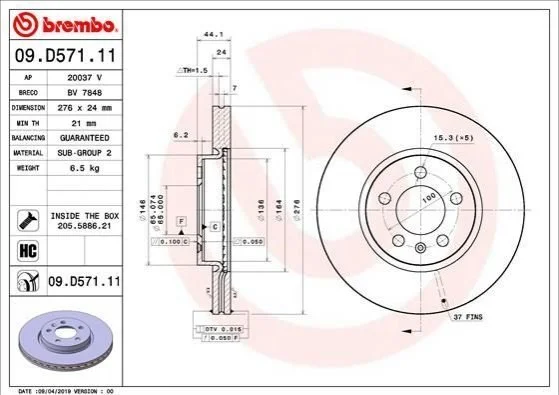 Аналоги "09.D571.11 BREMBO":