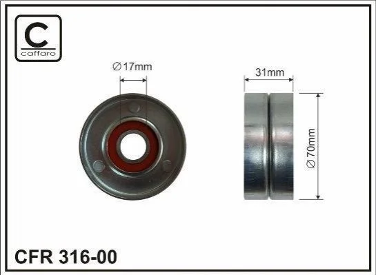 Ролик натяжной механизма поликлинового ремня Mercedes-Benz C W203/W204, E W211, R W251, Sprinter C230-E500 70x17x30 CAFFARO 316-00