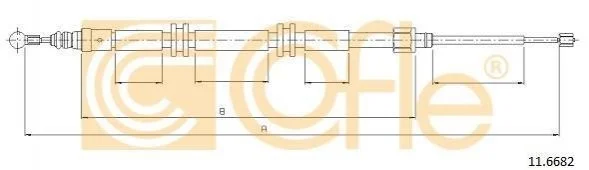 Трос ручного тормоза зад. Kangoo 08- Л.=Пр. (1760/920) COFLE 11.6682