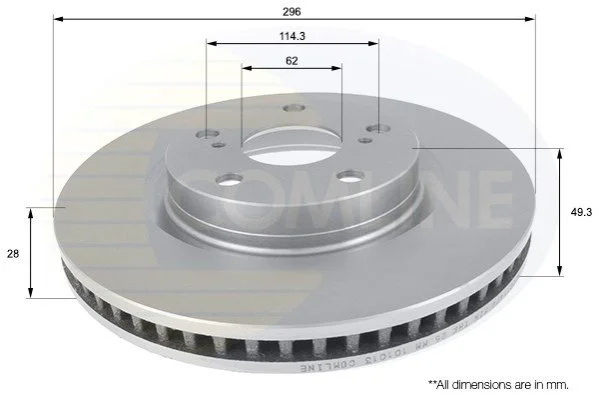 - Диск гальмівний вентильований з покриттям Toyota Auris 10->, Mirai 14->, Prius 11->, RAV 4 06-> Comline ADC01147V
