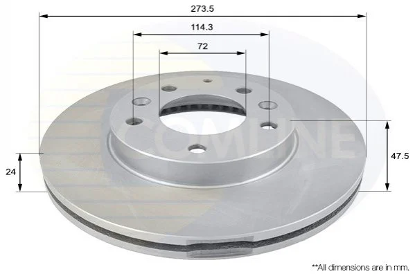 - Диск гальмівний вентильований з покриттям Mazda 323 01->04, 626 98->02, 6 02->, Premacy 99->05 Comline ADC0443V