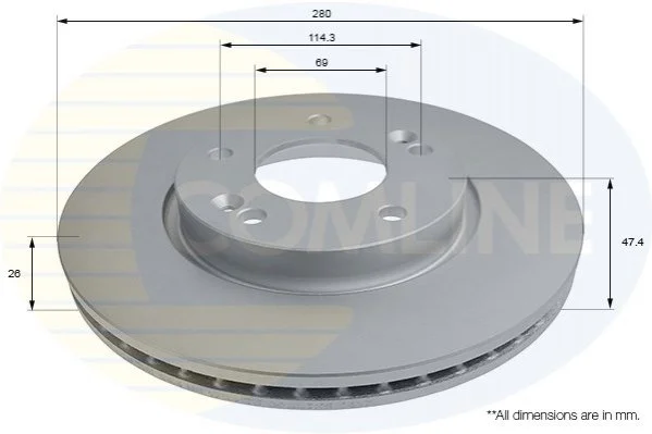 - Диск гальмівний вентильований з покриттям Hyundai Sonata 07->14 Comline ADC2824V