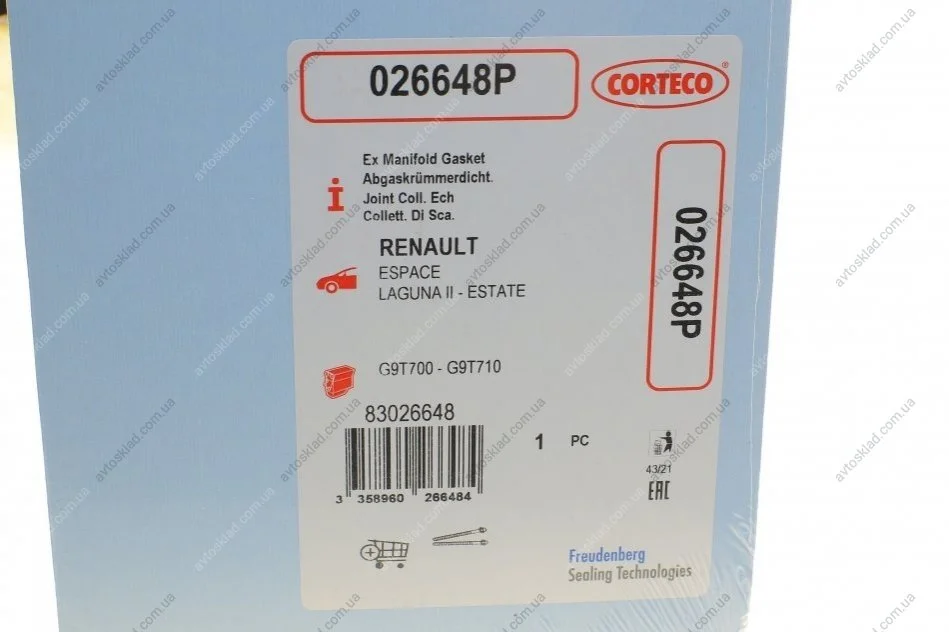Прокладка коллектора EX RENAULT 2.2L DCI G9T CORTECO 026648P