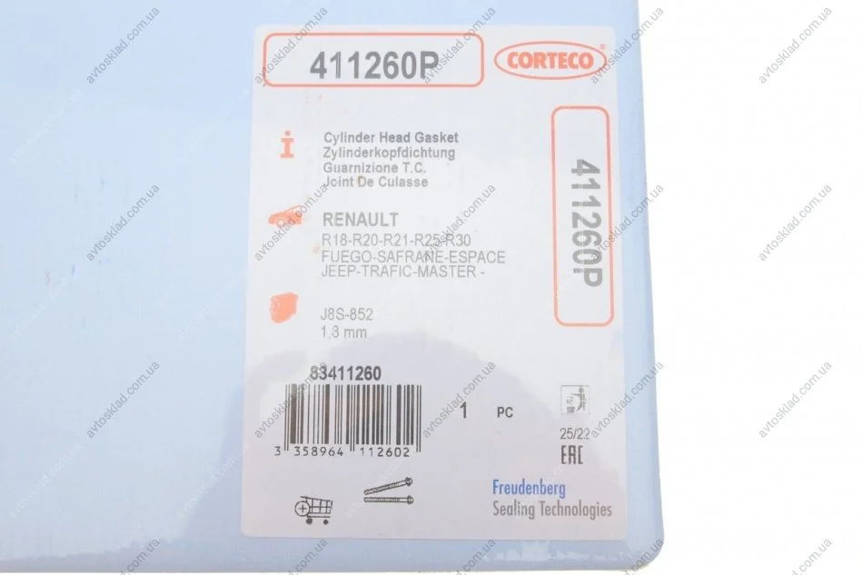 Прокладка головки блока RENAULT J8S 1.8MM 2R FIBER CORTECO 411260P